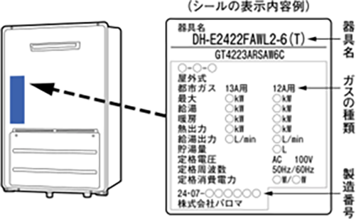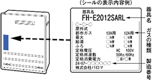 器具名・ガス種・製造番号の確認方法