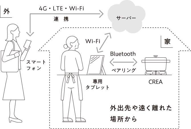乾電池の消耗、安全装置の作動を音声でお知らせ。別売のタブレットなら、調理サポートも音声で伝えてくれます。