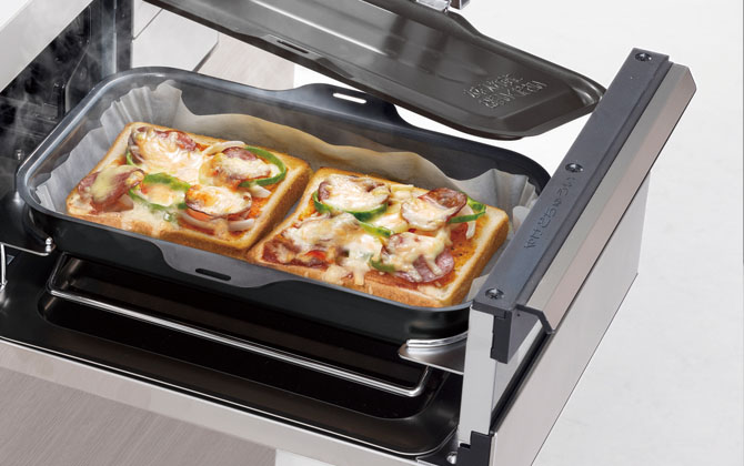 両面焼グリルなら、オーブンのように包み焼きするので、グラタンやローストビーフなども作れます。揚げもののあたため直しや、トーストも短時間で仕上がります。