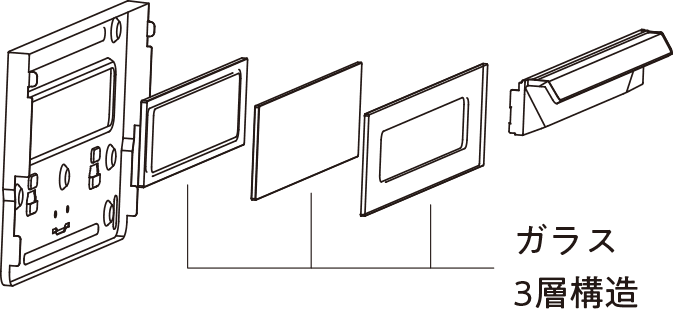 ガラス3重構造により、弊社従来の他両面焼グリルと比較し、グリル扉のガラス温度が約180℃から約80℃に大幅に低減。小さなお子さまなどの火傷低減にもさらにあんしんです。