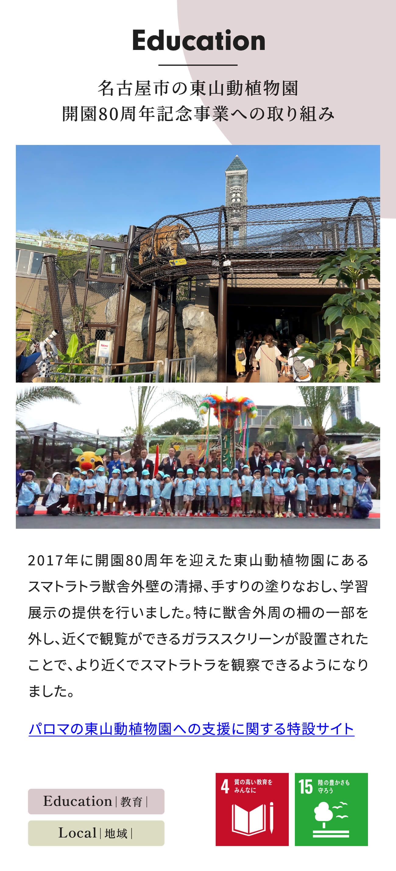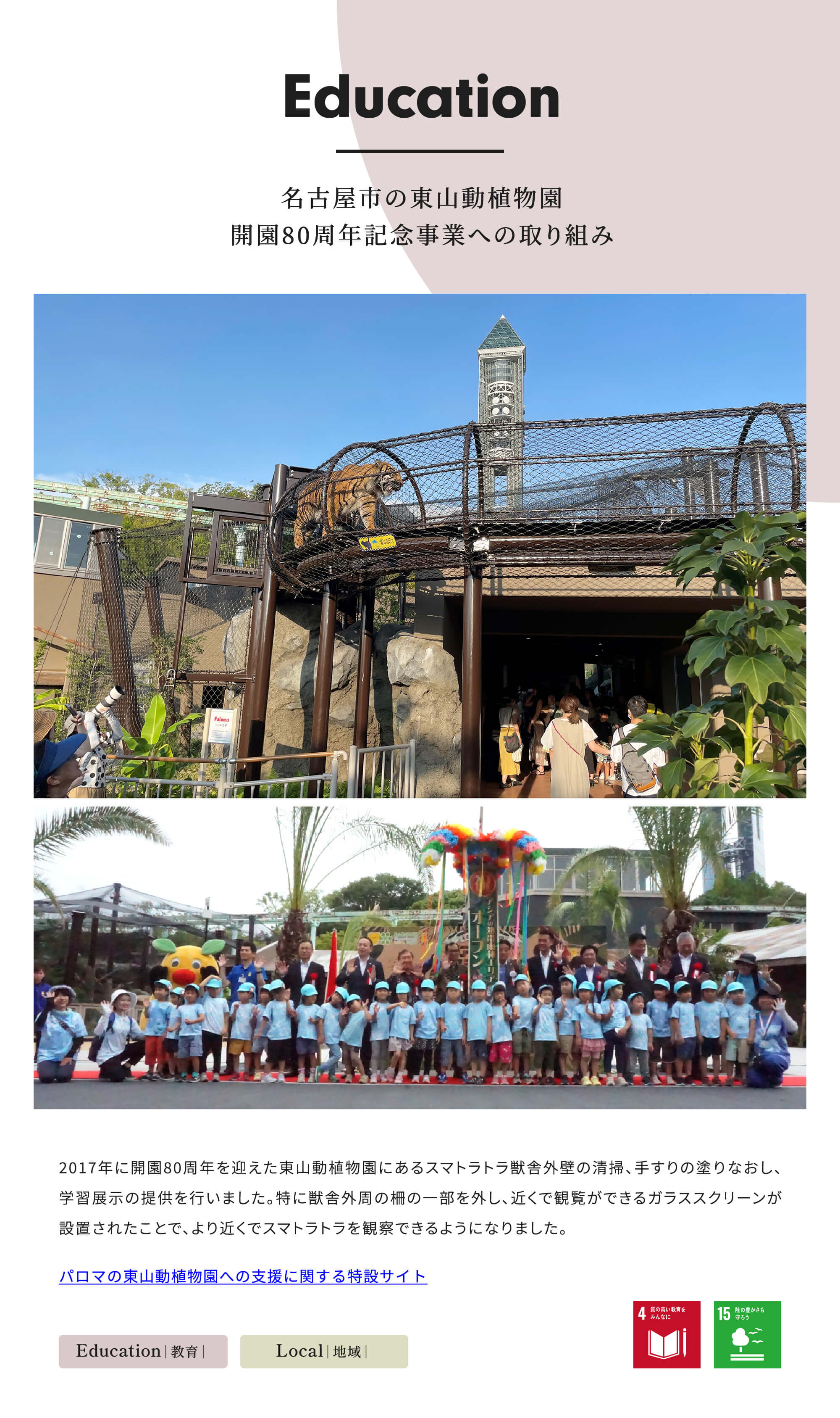 個体数が減少し続けているスマトラトラへの支援を通して、社会の持続性を支えている生物多様性への配慮を行っています。